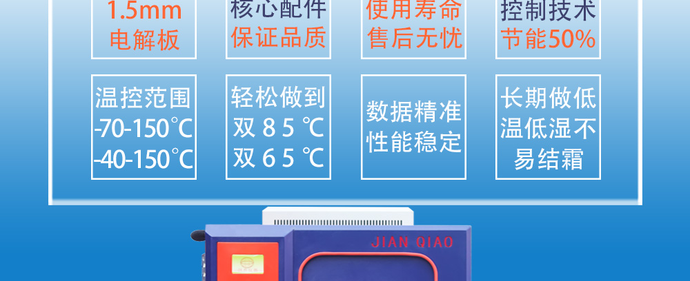 產(chǎn)品型號(hào):JQTH-225L 品牌:劍 喬 用途:新款恒溫恒濕試驗(yàn)箱(JQTH-225L),主要用來測(cè)試各種材料耐熱、耐寒、耐干、耐濕的性能。本機(jī)采用中英俄文顯示彩色觸控式屏幕畫面,操作簡(jiǎn)單,程序編輯容易可顯示完整的系統(tǒng)操作狀況咨詢熱線:13829135130
