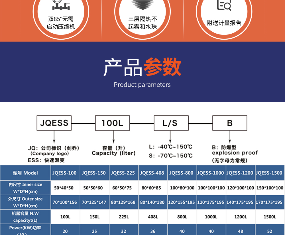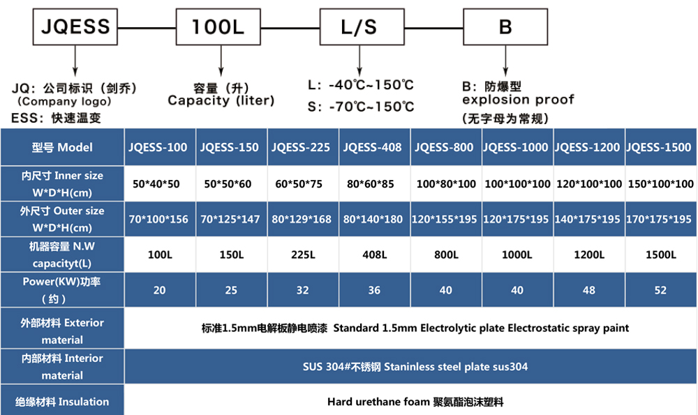 快速溫變試驗箱型號命名說明 及 參數(shù)表
