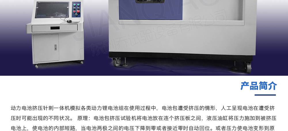 產(chǎn)品型號:JQ-5067-20T(可定制) 品牌:劍 喬 用途:動力電池擠壓針刺一體機模擬各類動力鋰電池組在使用過程中,電池包遭受擠壓的情形,人工呈現(xiàn)電池在遭受擠壓時可能出現(xiàn)的不同狀況。 原理:電池包擠壓試驗機將電池放在連個擠壓咨詢熱線:13829135130