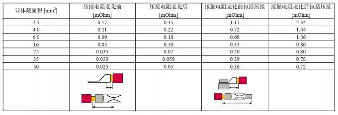 2.2.3 電壓降測(cè)試:該項(xiàng)測(cè)試是為了確定在標(biāo)稱電流狀態(tài)下由于導(dǎo)線壓接和接觸面區(qū)域的電阻而產(chǎn)生的電壓降。可以根據(jù)電壓降計(jì)算出總連接電阻。根據(jù)不同的線束規(guī)格,線束的壓接點(diǎn)的接觸電阻可參看表3: